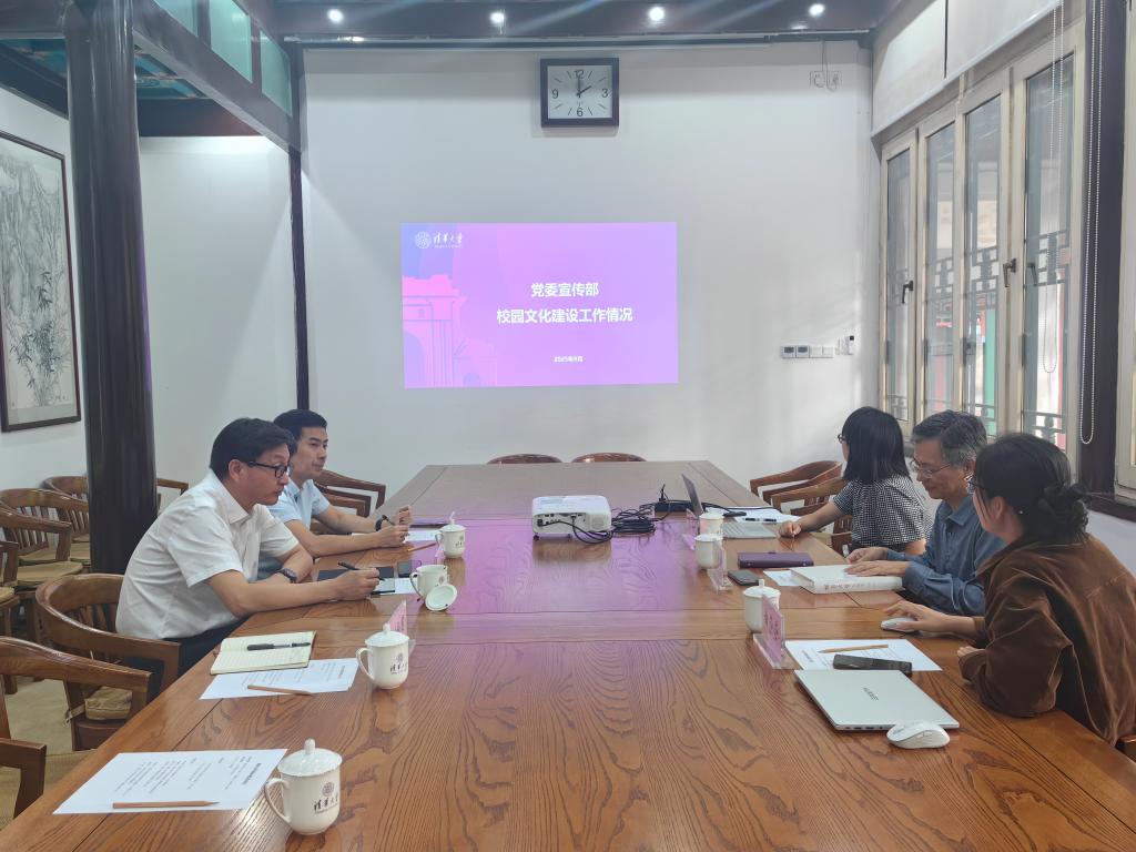 【本站讯】9月26日,为贯彻落实我校2025年北大、清华两校援建工作要求,推进我校与清华大学之间在宣传思想文化领域的交流合作,党委常委、宣传部部长杨众晖带队赴清华大学党委宣传部和艺术教育中心,调研学习清华大学在大学文化建设和美育工作方面的典型经验做法。清华大学党委宣传部常务副部长、新闻中心主任刘涛雄,党委宣传部副部长曲莎莎,艺术教育中心主任赵洪会见我校一行并座谈交流。
