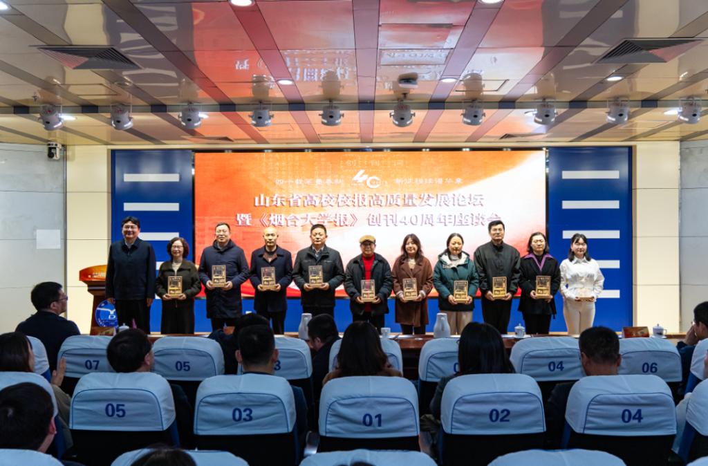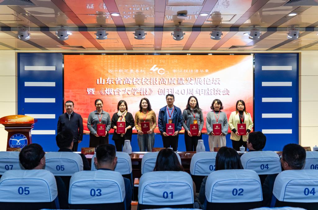 会上,王志刚向2024年度山东新闻奖和山东高校校报优秀新闻奖获奖高校代表颁发获奖证书。白青向曾为《烟台大学报》40年发展作出突出贡献的校报工作者颁发纪念奖牌。