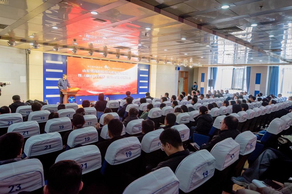 于洪良代表全省兄弟高校校报向《烟台大学报》创刊40周年致以祝福。他表示,《烟台大学报》传承着烟大的非凡过往,诠释着烟大的隽永文化,描绘着烟大的璀璨未来,希望《烟台大学报》与全省校报同仁一道,以新技术、新机制、新模式加快媒体融合发展步伐,让高校校报老树发新芽。