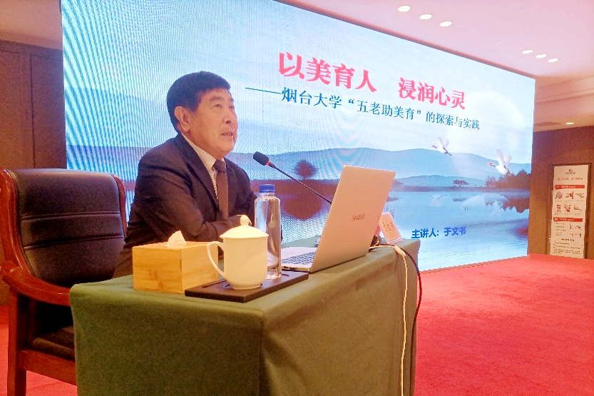 会上,烟台大学关工委副主任、烟台大学原党委副书记于文书作了题为《以美育人,浸润心灵——烟台大学“五老”助美育的探索与实践》专题报告,从开展“五老”助美育的时代背景和重要意义、美育的实质与功能、烟台大学“五老”助美育的探索与实践等方面介绍了烟台大学推广审美教育的经验和成果。青岛理工大学、烟台市教育局、青岛恒星科技学院、青岛职业技术学院、烟台职业学院代表依次作了交流发言。