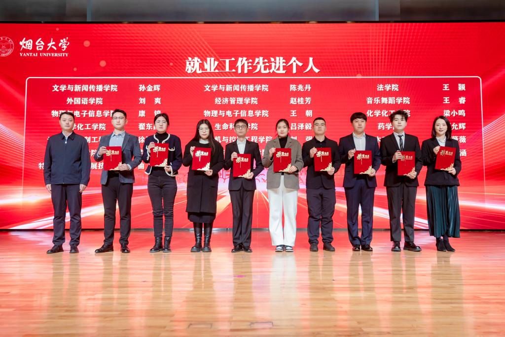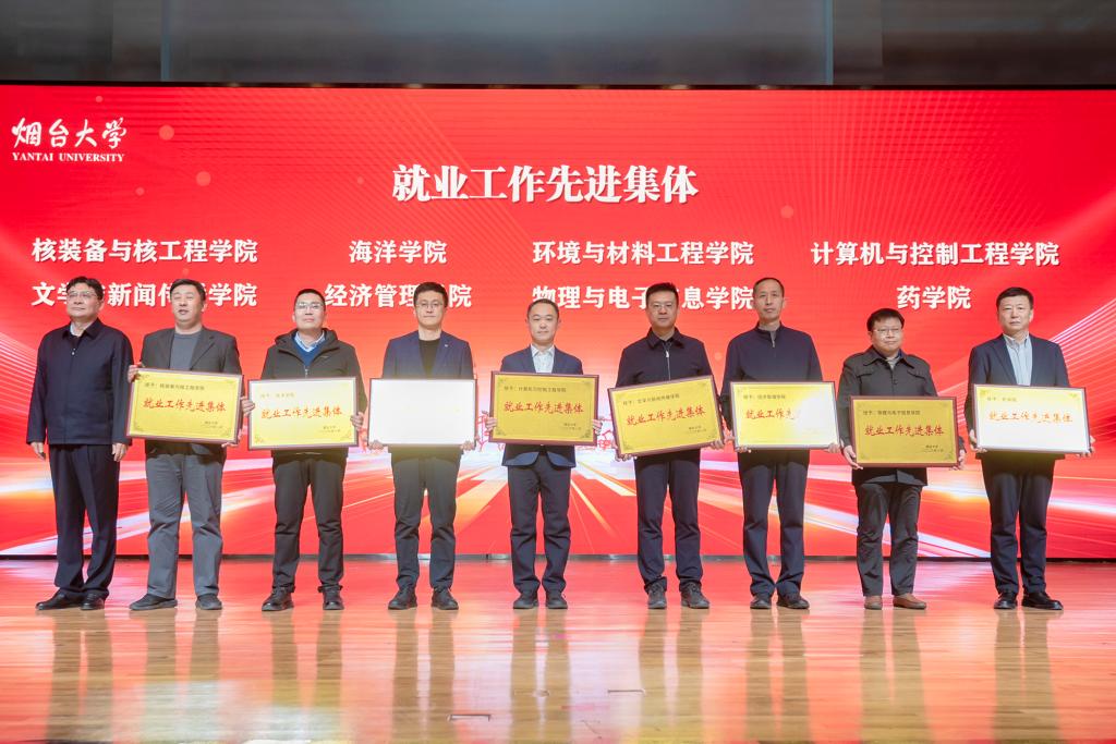 会议表彰了2025年就业工作先进集体和先进个人。全体与会人员观看了烟台大学毕业生成长纪录片《职启・新程》。烟台市公共就业和人才服务中心毕业生服务科科长刘东辉推介了烟台市青年人才政策。核装备与核工程学院党委书记李军、海洋学院党委书记马春富、物理与电子信息学院辅导员康锦、经济管理学院教师刘雪燕分享了促就业经验做法和工作感受。