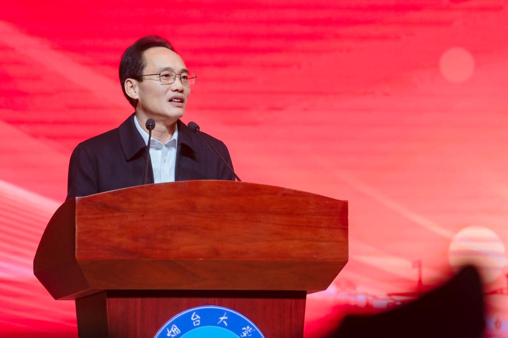 党委副书记、校长郝曙光,烟台市人力资源和社会保障局党组成员、副局长宋军明为“烟台大学大学生就业创业赋能中心”揭牌