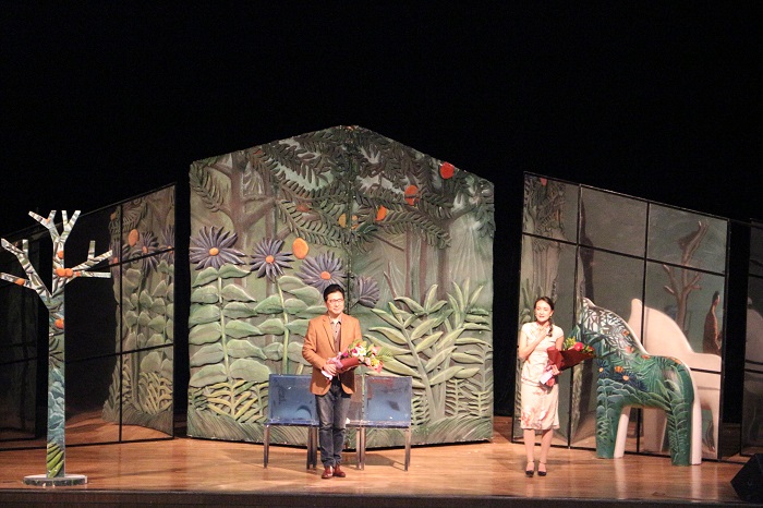 在学校举办“高雅艺术进校园”活动之际,省话剧院颜勤、杨茗羽两位老师还应邀到我校天狼星话剧社与青年学生面对面交流话剧表演。
