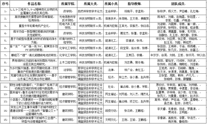 通过前期校赛选拔阶段,依据评审专家评审意见,拟推荐如下作品进入省赛阶段,具体名单如下: