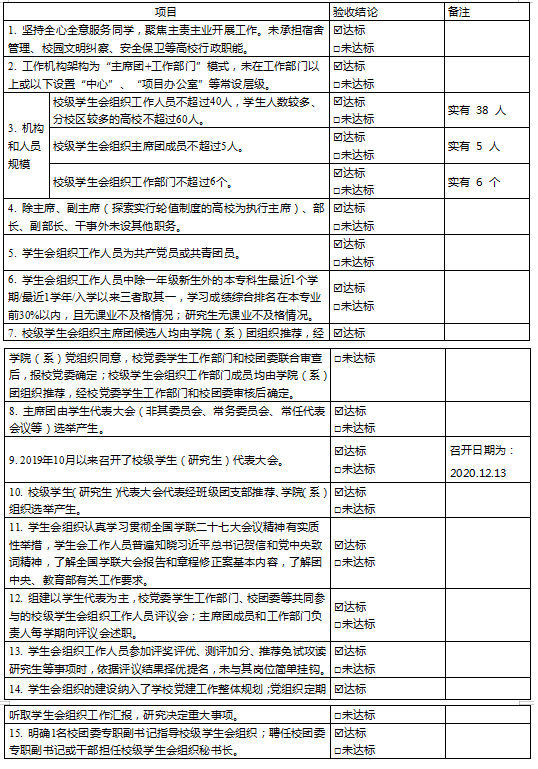 为落实共青团中央、教育部、全国学联联合下发的《关于推动高校学生会(研究生会)深化改革的若干意见》,以及《高校学生会组织深化改革评估工作方案》要求,接受广大师生监督,现将我校学生会(研究生会)改革情况公开如下。