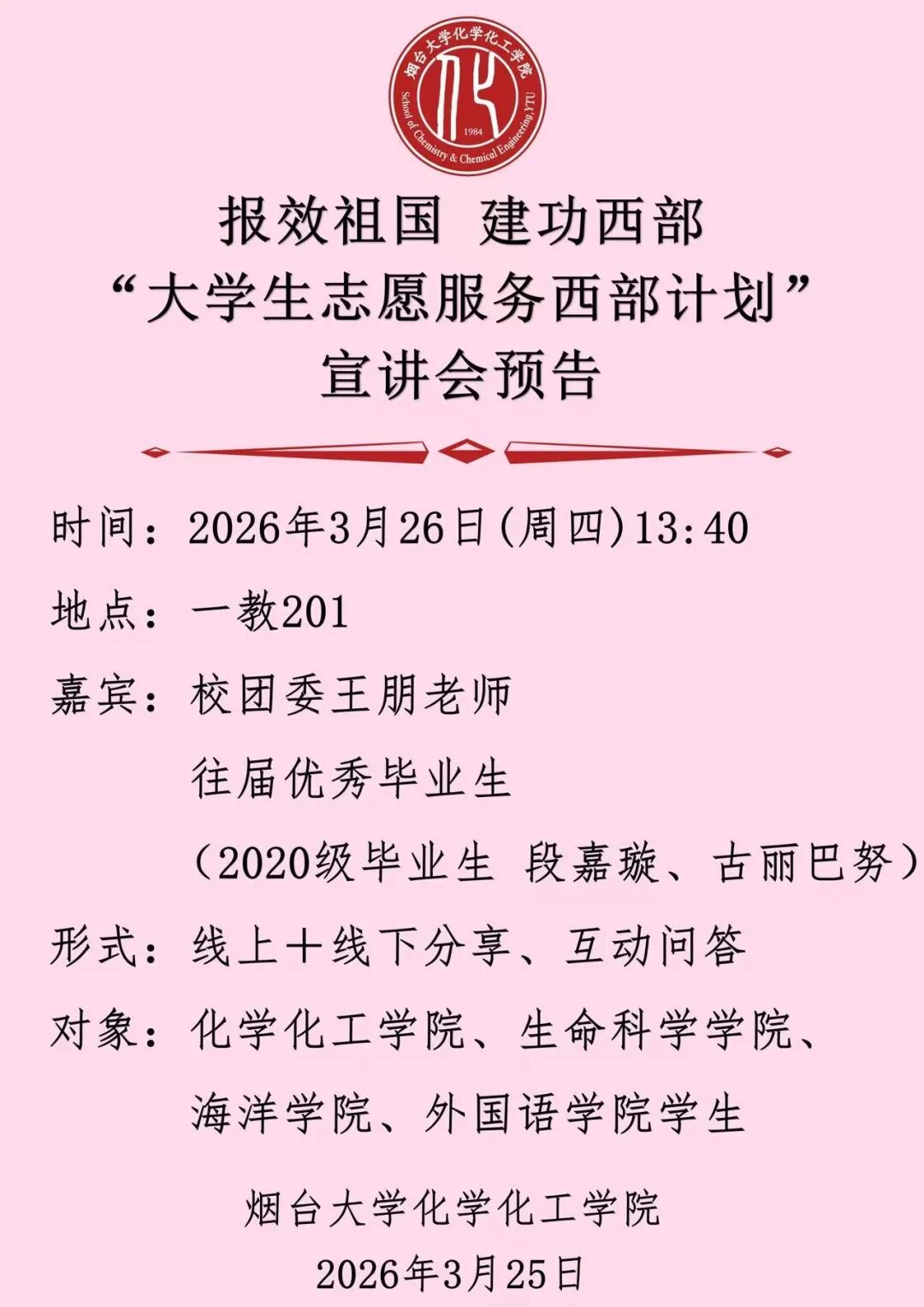 报效祖国 建功西部 | “大学生志愿服务西部计划”宣讲会预告