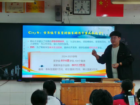 引航计划,指引莘莘学子成长方向;青春传薪,搭建高校与中学育人桥梁。随着“引航计划”在各地深入推进,烟台大学多支学生团队肩负使命,重返高中母校开展社会实践活动。其中,化学化工学院应241-6班马泽宇、化251-1班陆煜涛、应251-1王思彤等同学,分别走进各自母校,以真情讲述烟大故事,用热忱点亮学弟学妹的逐梦征途,全方位展现烟大的综合办学实力与烟大学子的青春风采。