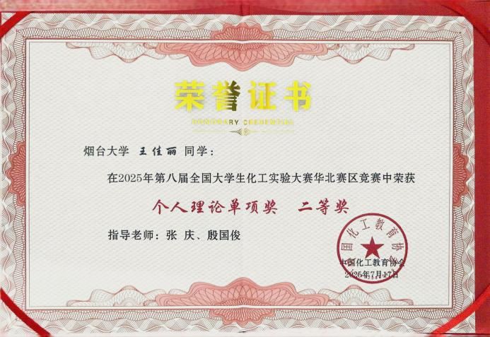 大二学年,出于对专业实践的热爱,王佳丽主动加入学院实验室开启科研探索。参与科研项目期间,从实验方案设计、试剂配比,到过程监测、数据记录,在每一个环节,她都恪守高标准,绝不忽视细节漏洞。在她的严谨思维与坚韧品质得到充分锤炼后,她开始面向不同类型竞赛,同时制定相应的备赛策略:CATTI杯翻译大赛侧重日常积累,坚持背诵专业词汇、练习真题,打磨表达精准度;化工实验大赛则深耕原理,反复模拟操作,精准把控“半滴试剂”等关键细节,不断磨合团队协作。科研与竞赛路上,她也曾遇数据偏差、备赛压力大等困境,但她始终秉持着“精益求精”的信念,冷静复盘、排查问题,最终突破难关,斩获佳绩。