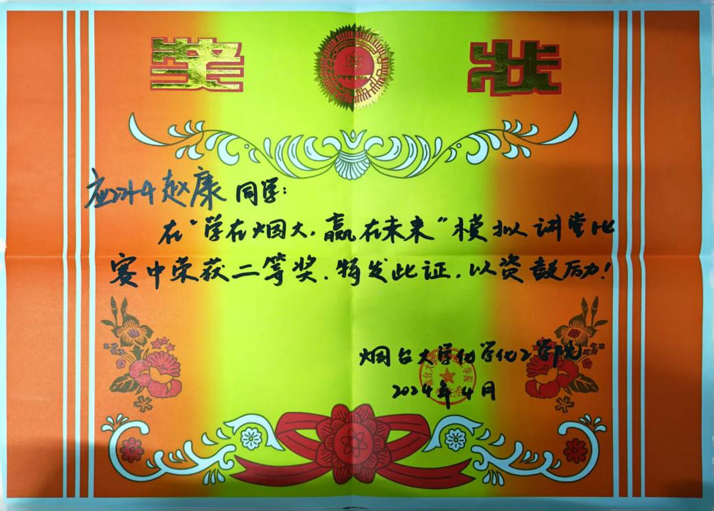 赵康,中共预备党员,化学化工学院应221-4班学生。学业成绩连续两学年专业第一、综测第二,身兼团支部书记、禁毒猎冰队队长等职。她斩获汉高奖学金、省化学实验大赛一等奖等多项荣誉,大一进实验室并以第二作者申发明专利,还带队开展近10次禁毒宣讲志愿活动。