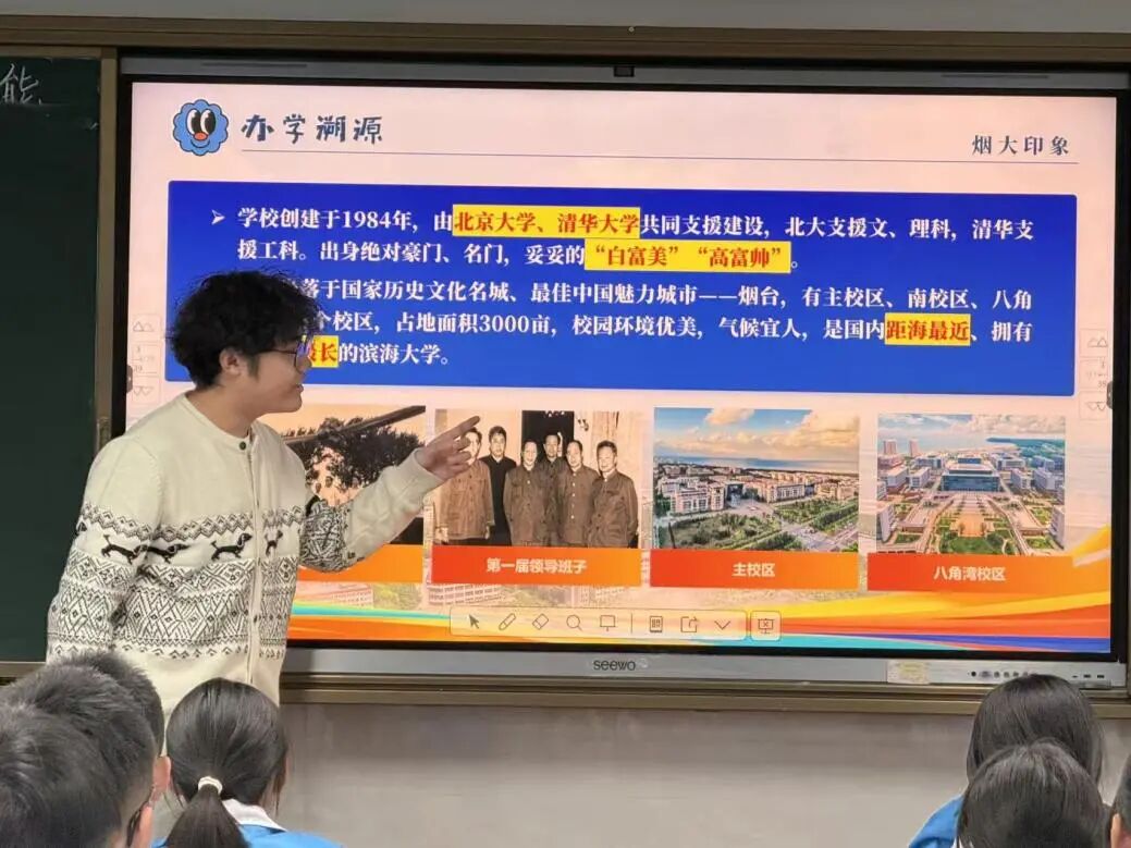 引航计划,指引莘莘学子成长方向;青春传薪,搭建高校与中学育人桥梁。随着“引航计划”在各地深入推进,烟台大学多支学生团队肩负使命,重返高中母校开展社会实践活动。其中,化学化工学院高251-4班董正笑等同学分别走进各自母校,用真情分享烟大故事,用热忱点亮学弟学妹逐梦之路,全方位展现烟台大学的综合实力与青春风采。
