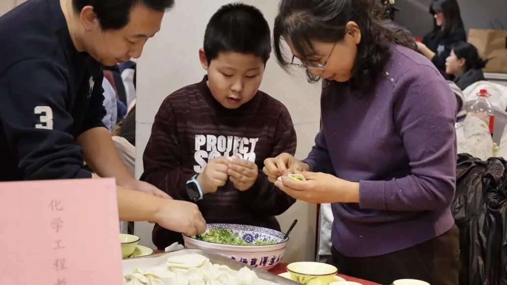 “包饺子比赛”最是温馨,老师们围坐桌前,揉面、擀皮、包馅动作娴熟,指尖翻飞间,一个个形态各异的饺子渐次成型,热气未起却已暖意满盈,新春的烟火气与幸福感填满整个大厅。