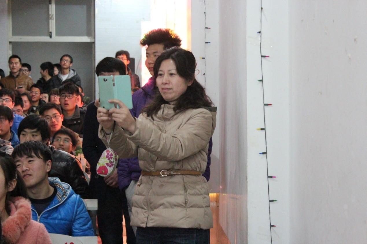 上届比赛获奖选手刘玉田、汪昊、丁武侠、甘圣男、黄萱铗担任本届比赛评委,学生会主席吴继林、副主席韩松、董晨,体育部部长马吉锋、学习部部长王惠蕾作为嘉宾来到现场为选手们加油助威。选手们都带来了阵容庞大的亲友团,台下用心为儿子陈道远摄像的妈妈更是成为了本场比赛的一大亮点。