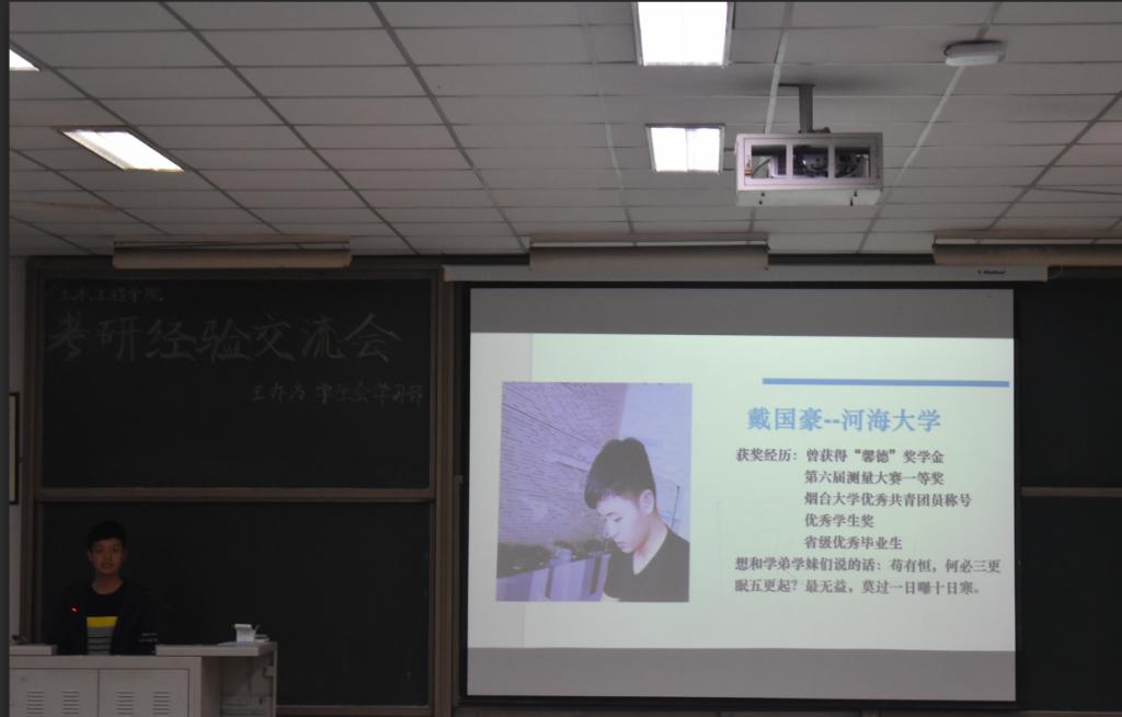 为提高学院的教学素质与教学质量,深入实践“守信、求实、好学、力行”的校训,帮助我院学生更好的了解有关考研的相关事宜,对考研有充分的了解和认识,并对自己的未来有明确的定位和认识,土木工程学院于4月24日下午在综合楼114室举办考研经验交流会。