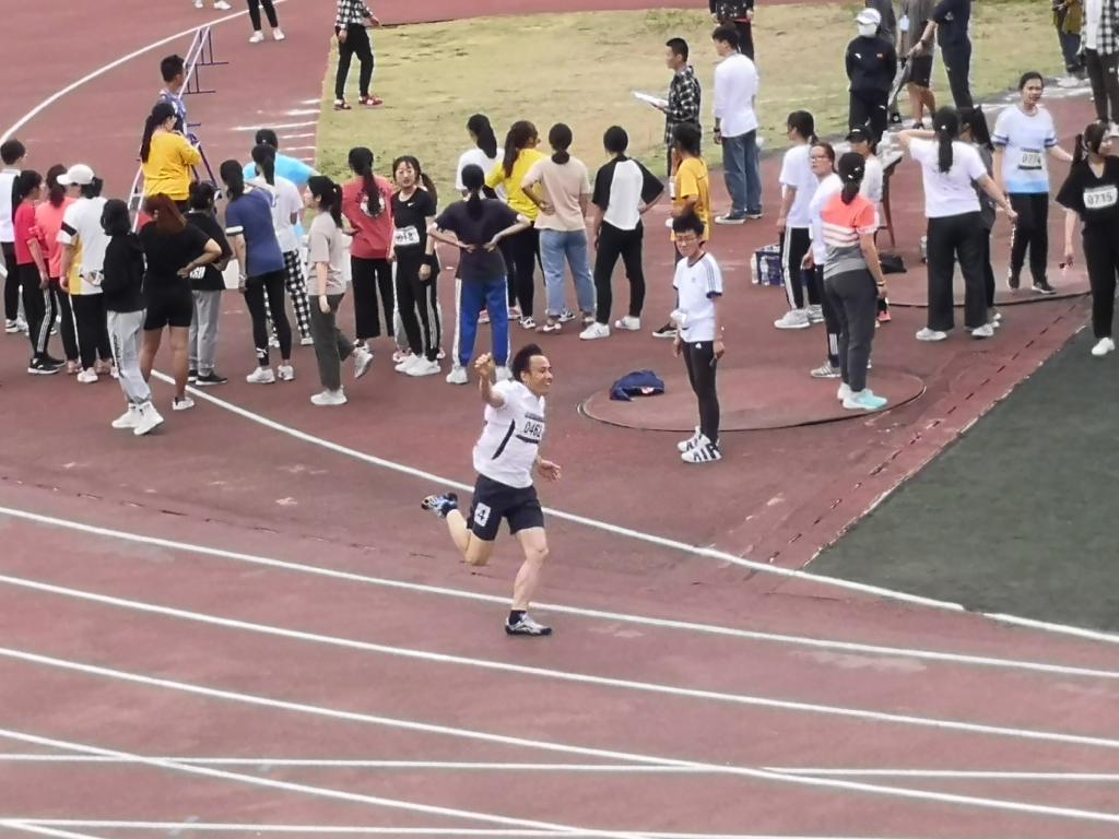 这位赛场上的常胜将军今年已经51岁了,但他依旧有着青年的热血,青年一般的体格。比赛开始前,吴江龙老师就早早地到达场地,并抓紧投入到热身准备中,岁月似乎并未在这位老将身上留下痕迹,风采依旧不减当年,活力与激情在他紧绷的肌肉线条中呼之欲出,强健的体格更是显示出他对于运动的热情。发令枪响,比赛开始,吴老师不急不燥,并没有争抢第一的位置,保持速度,伺机反超。到了第二圈,吴老师开始加速,连续超越两人。看台上的土木学子们也被吴老师势在必得的气势所感染,从座位上站起为吴老师呐喊鼓劲,一声声加油彰显了土木工程学院的恢弘气势,吴老师也不负众望,平稳前进。800米,说长不长,说短也不短,最后冲刺阶段,吴老师再次加快了脚步,奔向终点。最终吴老师以明显的优势摘得教职工800米组桂冠。