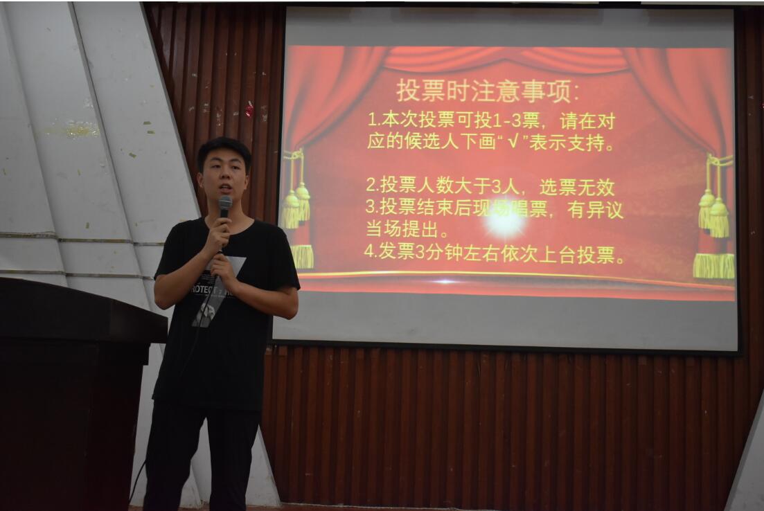 活动伊始,由刘壮壮学长介绍本次竞选注意事项。按照会前抽签决定的顺序,六位竞选人依次登台进行竞选演讲。竞选人围绕自身优势、工作计划、未来展望等方面进行演讲。其中,学习部副部李瑞表示其在任职期间以务实的作风落实工作,以扎实的态度力求实效,并多次获得校级院级荣誉。生活部副部李祺从自己的工作态度,工作方法介绍了自己。在她的组织下,宿舍文化节、宿舍安全卫生成果展都取得了不凡的成绩。自律部副部刘晓丽在竞选演讲中提到,在自律部任职期间,她与各级同学积极交流共同进取,并表示自己会以更加热忱的方式从身于学生会工作,以积极、热爱的态度更好为同学服务,以充分展示学生干部的带头作用。本次竞选采取无记名投票方式,根据主席团候选人产生程序进行差额选举,由自律部全体成员负责检票、唱票、计票流程,且此次活动的44票均为有效票。活动最后,由付海鹏老师做活动总结,他结合国家的最新政策从工作等方面进行了全面总结,并对未来的努力方向提出了建设性意见,。