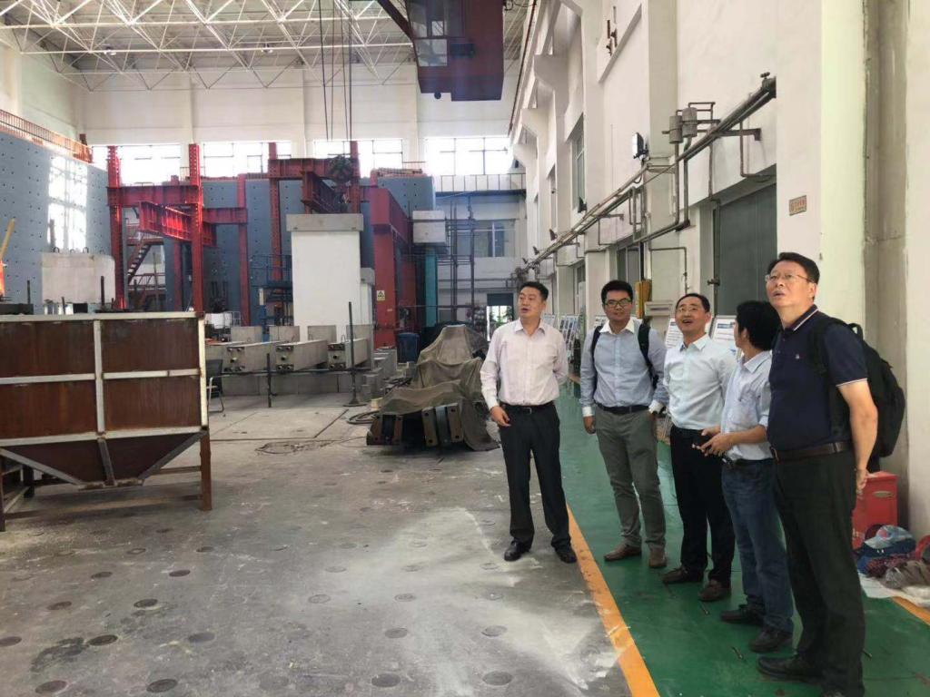 调研交流会结束后,在土木工程系副主任陈适才教授的引导下参观了北京工业大学省部共建结构试验室。陈教授主要介绍了试验中心的历史沿革、特色和管理制度,展示了4000吨+7200吨液压伺服试验机、九子台震系统、3米*3米振动台等大型先进试验设备,还讲解了试验中心正在进行的各项试验的基本情况。院长逯静洲教授等就实验室管理经验、实验室设备布局、先进设备性能以及正在进行的各项试验进行了仔细询问,了解到许多有价值的信息。
