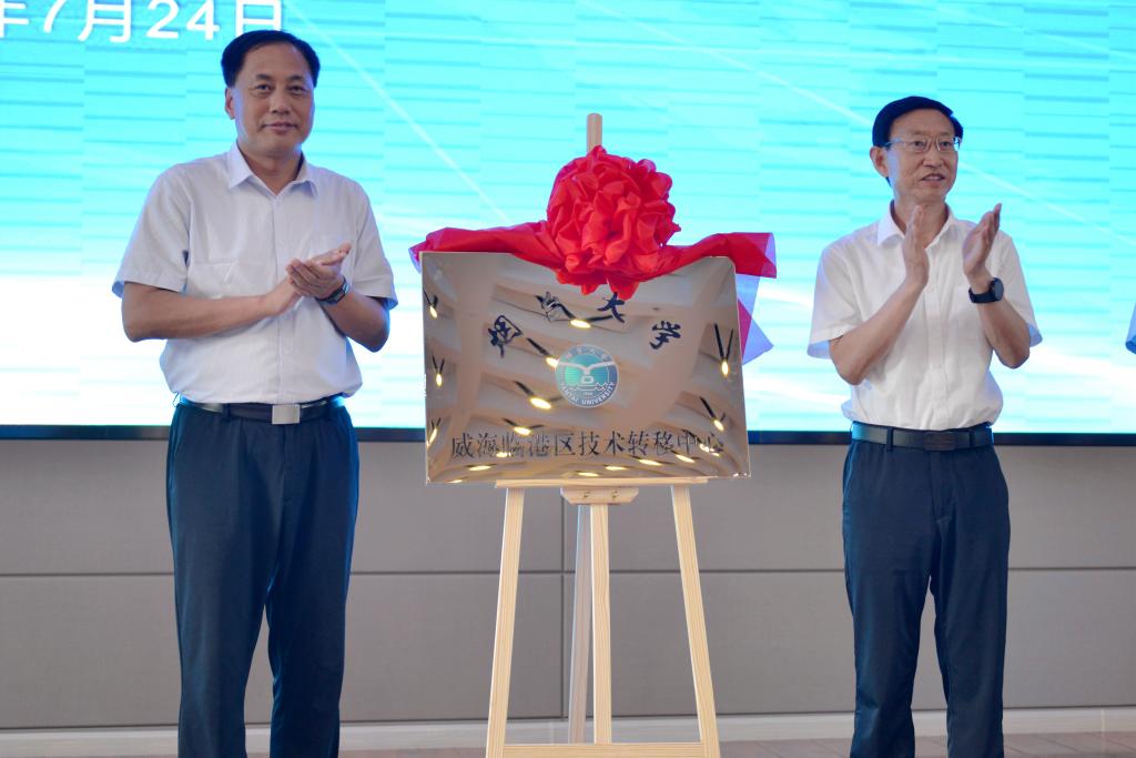 张殿臣与林强共同为“烟台大学(威海临港区)技术转移中心”揭牌。服务地方办公室主任毕朝辉代表学校与临港经济技术开发区签署战略合作协议。