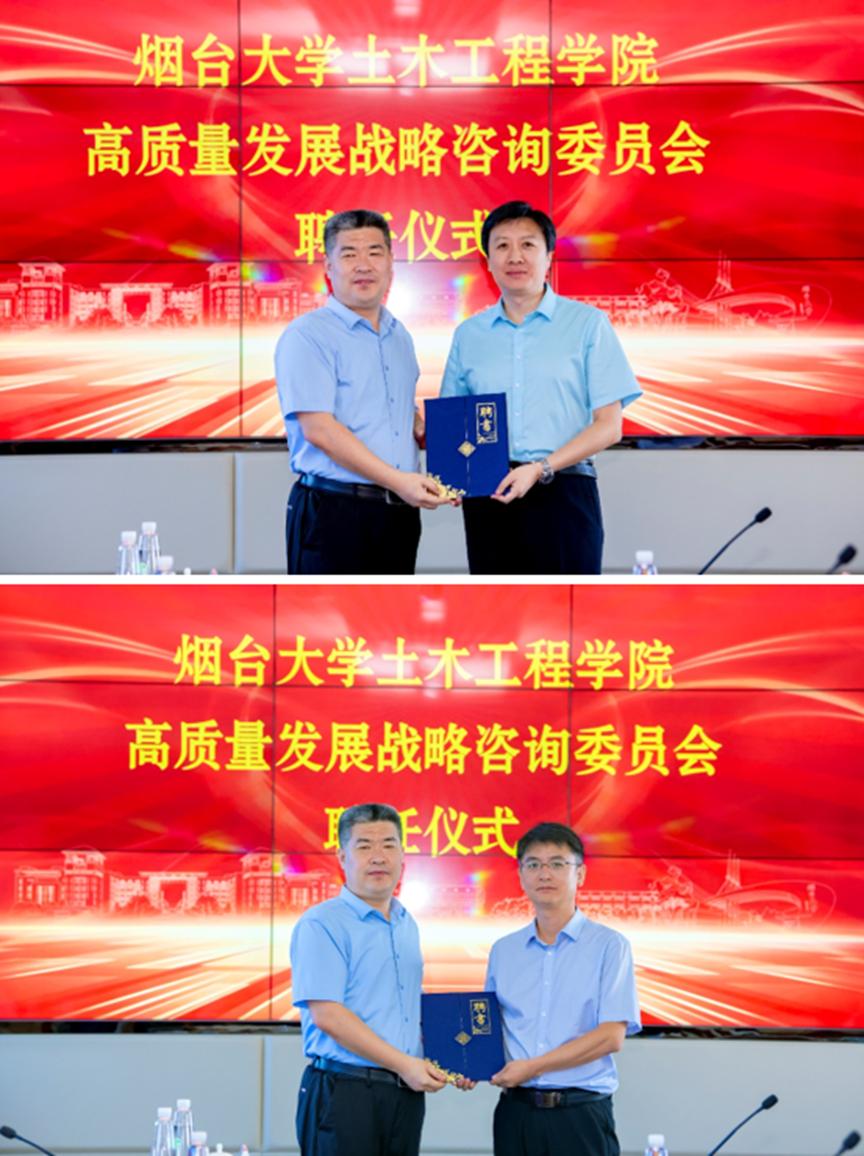 郝曙光在致辞中对与会专家的到来表示热烈欢迎和衷心感谢,他介绍了学校和土木工程学科的发展情况,希望烟台大学土木工程学院高质量发展战略咨询委员会的成立可以进一步助推土木工程学科高质量内涵式发展。随后,郝曙光校长和初磊副校长为土木工程学院发展战略咨询委员会专家颁发了聘书。李克非教授代表高质量发展战略咨询委员会致辞,表示将全力支持烟台大学土木工程学院在专业建设、人才培养、团队建设、科学研究等方面实现高质量发展。
