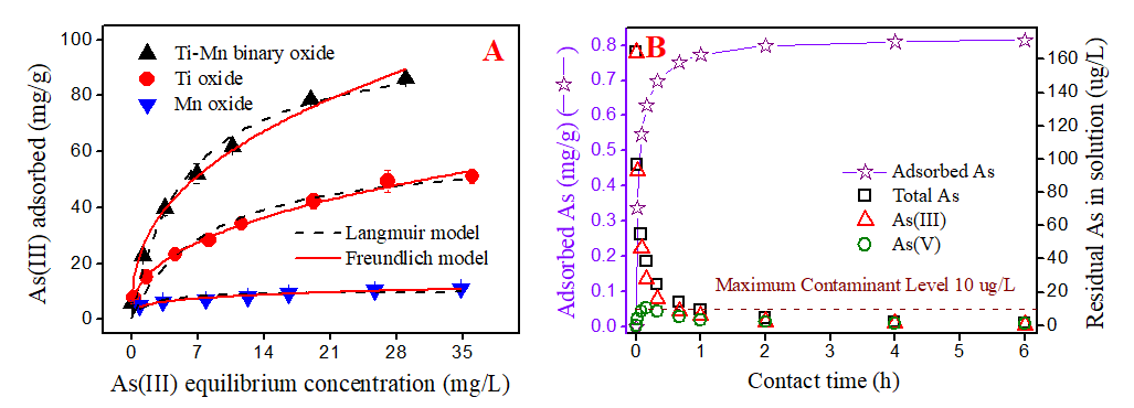 [3] Wei Zhang, Caihong Liu, Tong Zheng, Jun Ma, Gaosheng Zhang, Guohui Ren, Lu Wang, Yulei Liu. Efficient oxidation and sorption of arsenite using a novel titanium(IV)-manganese(IV) binary oxide sorbent. Journal of Hazardous Materials 353 (2018) 410-420. https://doi.org/10.1016/j.jhazmat.2018.04.034.