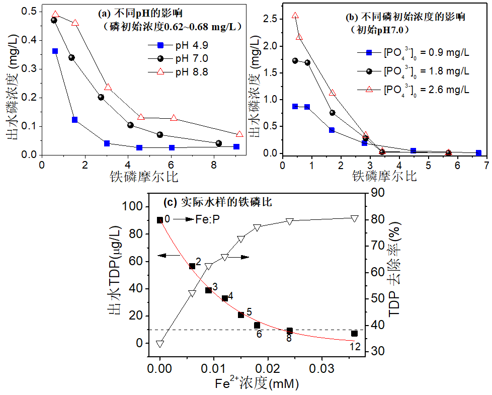 (b)反应时间对Fe2+-KMnO4工艺除磷的影响.