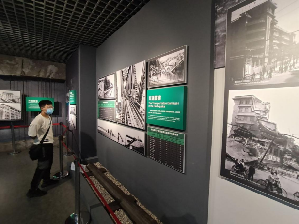 往前走,从救灾篇中我感受到了众志成城的力量。在抗震救灾前线指挥部的领导下,下设的各个办事机构都在抢险救人,从不成样子的房子,到救护车在地震中无法前行,人们急切的心情,再到人们聚集在一起,吃着大锅饭的情景,通过这些生动的雕塑画面,我仿佛真的看到了当时人们的团结一致,即便面对很多困难,但他们顾不得多想,义无反顾的投入到抗震抢险中。看到一幅幅照片、一尊尊蜡像和复原式景观,从劫难篇、救灾篇、自强篇、振兴篇、发展篇,它们向我们展示了唐山地震造成的灾难和抗震救灾、重建家园的壮举。我们团队都深深的被这种抗震救灾精神打动了,这是中华民族的民族精神在当代中国的集中体现和新的发展,抗震救灾精神是党和人民极为宝贵的精神财富。