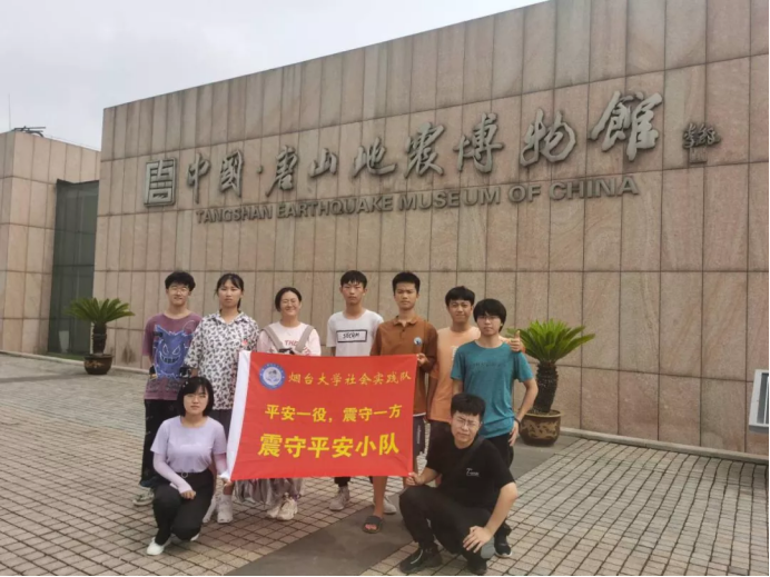 图为小队全体成员在地震博物馆前合照 路人 摄