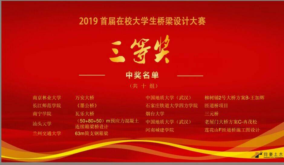 “2019首届在校大学生桥梁设计大赛”于6月1日至2日在上海同济大学举行,在百所高校的激烈竞争中,由烟台大学土木工程学院刘璇、刘颖、王楚贤、娄明组建的参赛队伍成功晋级决赛,并凭借作品《三元桥》荣获国赛三等奖。