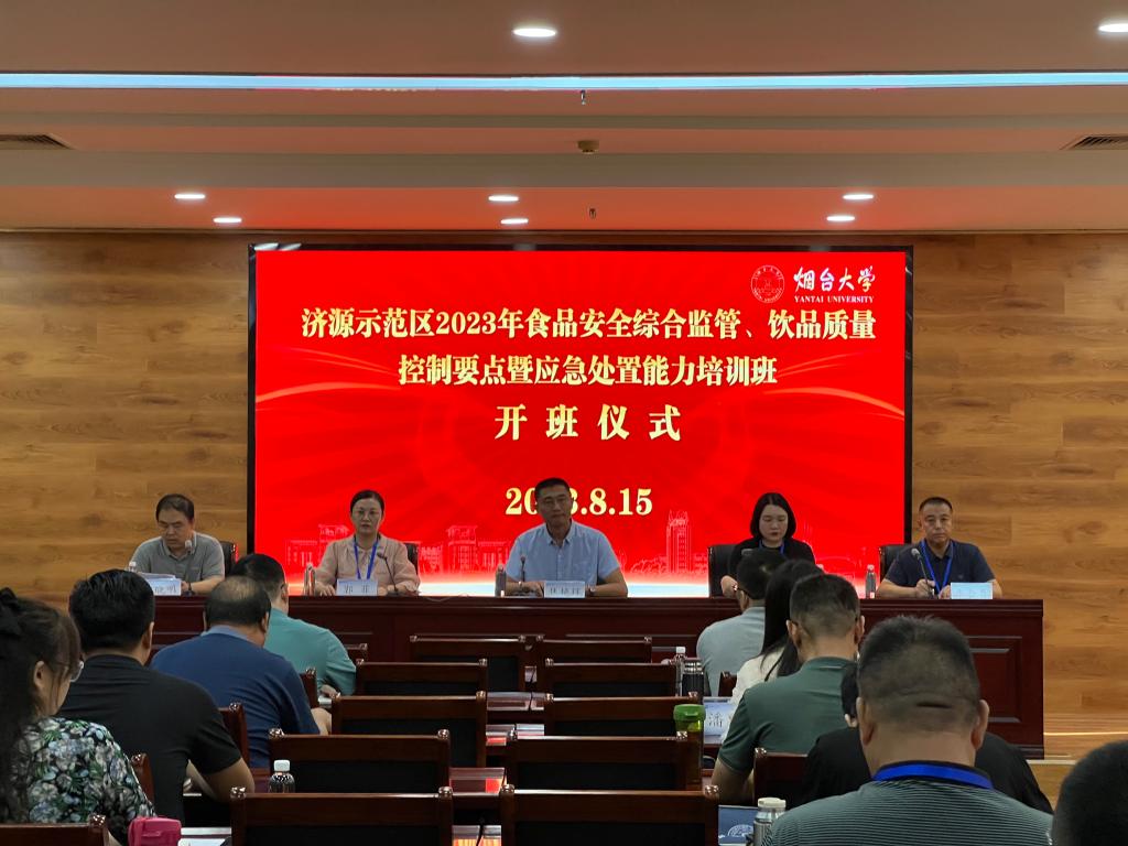 8月15日,河南省济源示范区市场监督管理局食品安全监管人员业务提升培训班在烟台大学开班。济源示范区市场监督管理局副局长郭菲、王爱玲、李合喜,烟台大学继续教育学院副院长焦艳辉出席开班仪式。济源示范区市场监督管理局相关科室负责同志、全区乡镇主要负责同志共50人参加培训。开班仪式由继续教育学院郭晓明主持。