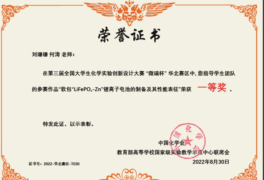 第三届全国大学生化学实验创新设计大赛“微瑞杯”华北赛区一等奖