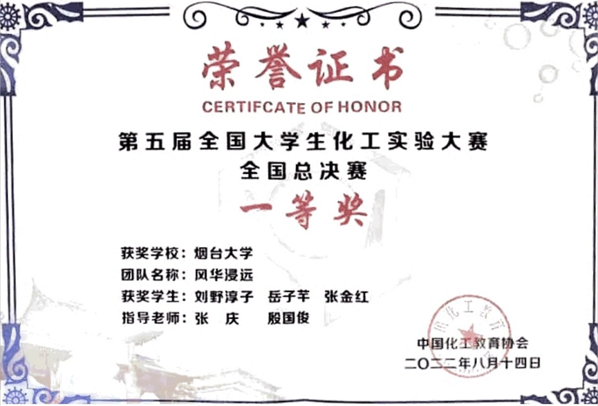 第五届全国大学生化工实验大赛全国总决赛一等奖