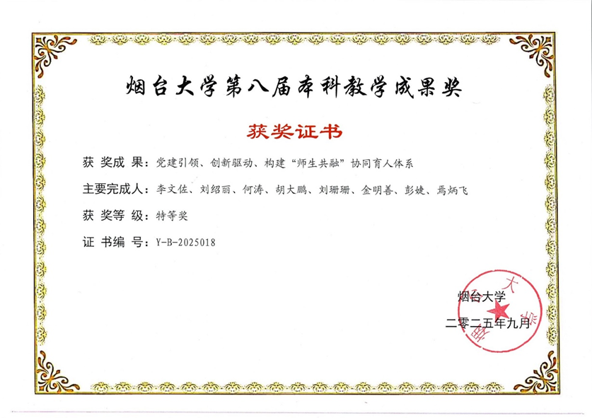 2025年烟台大学第八届教学成果特等奖:党建引领,创新驱动,构建“师生共融”协同育人体系