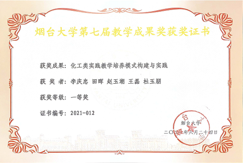 2021年烟台大学第七届教学成果一等奖:化工类实践教学培养模式构建与实践