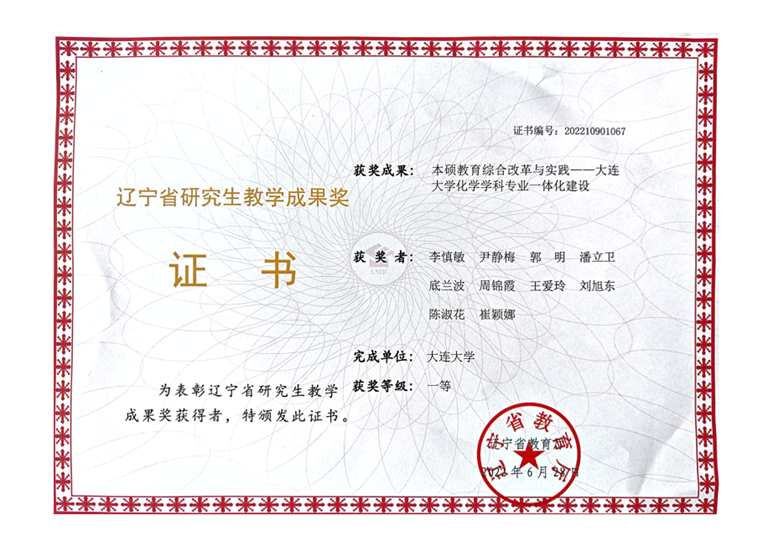 2022年辽宁省研究生教学成果奖一等奖:本硕教育综合改革与实践——大连大学化学学科专业一体化建设