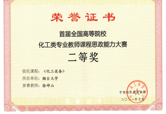 2021年首届全国高等院校化工类专业教师课程思政能力大赛二等奖