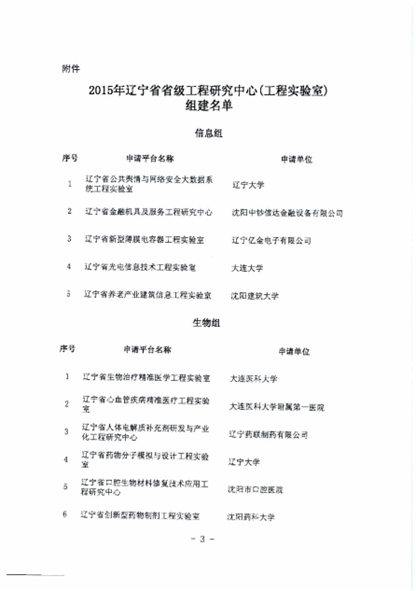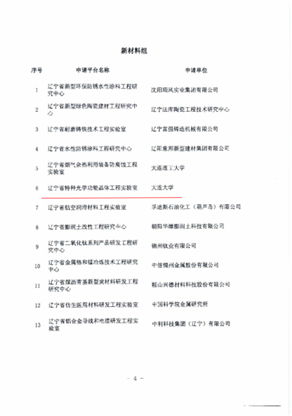 1. 2015年辽宁省特种光学功能晶体工程实验室