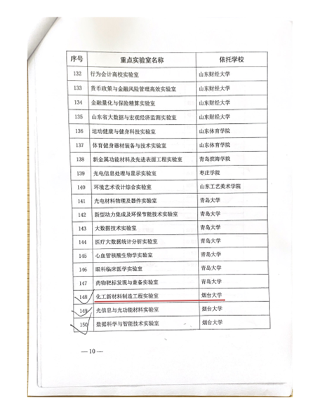 5. 2022年山东省高等学校化工新材料先进制造特色实验室
