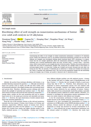 上一篇:[17]S Li, X Q Zhang, SJ Dong. et al. Insights into the effect of Si/Al ratio on Isobutane/1-butene ratio in the pore of H-BEA zeolite in C4 alkylation process [J]. Fuel, 2023, 348:128615.
